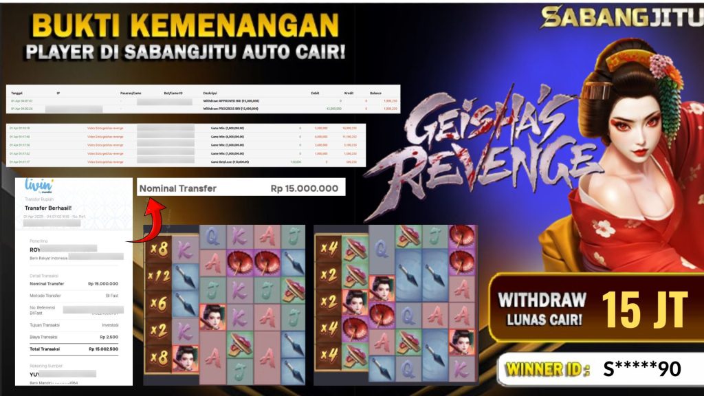 BUKTI KEMENANGAN 01 APRIL DI GAME GEISHA’S REVENGE WD 15 JUTA