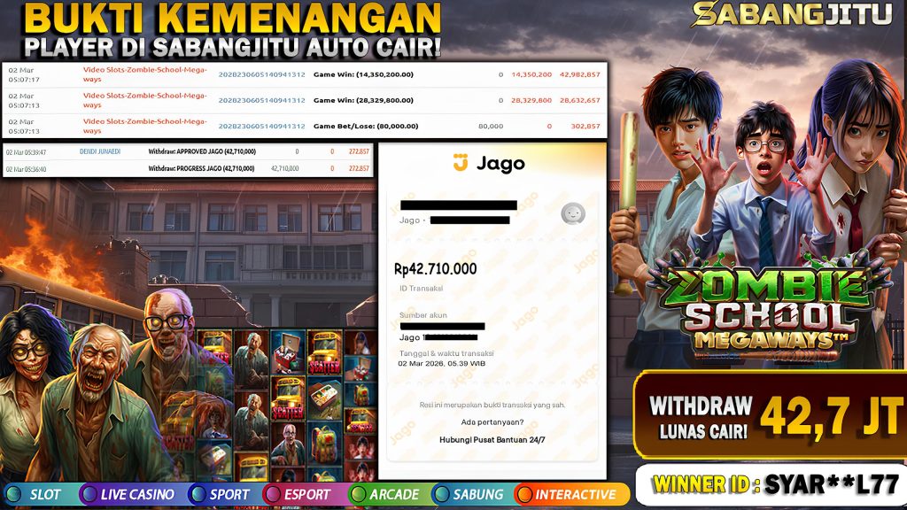 BUKTI KEMENANGAN 02 MARET DI GAME ZOMBIE SCHOOL MEGAWAYS-PRAGMATIC PLAY WITHDRAW 42.710.000.,-