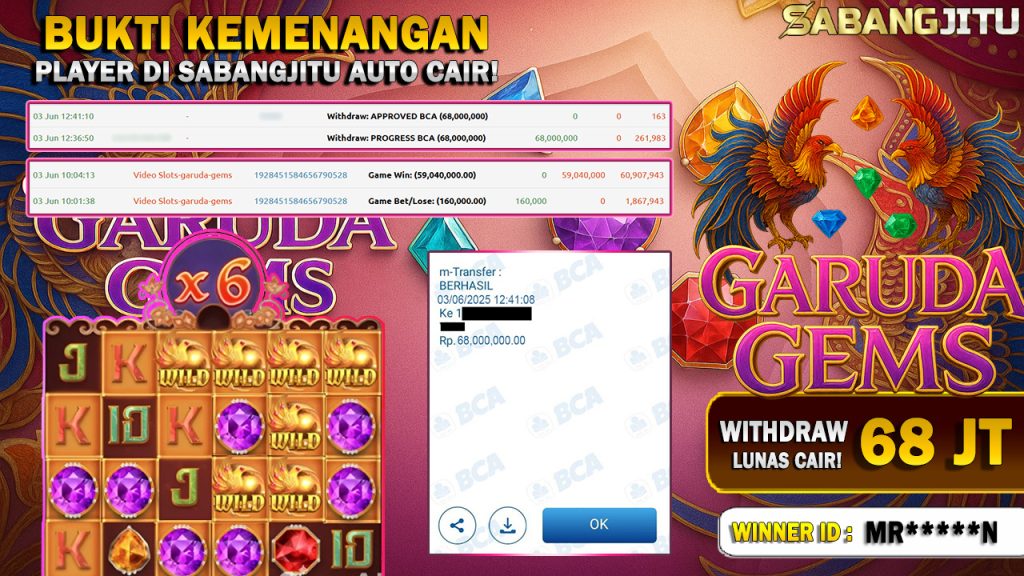BUKTI KEMENANGAN 03 JUNI DI GAME GARUDA GEMS WITHDRAW RP 68.000.000.,-