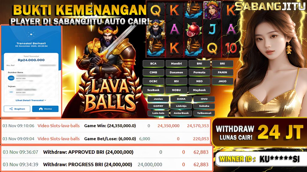 BUKTI KEMENANGAN 03 NOVEMBER DI GAME LAVA BALLS PRAGMATIC PLAY WITHDRAW 24.000.000.,-