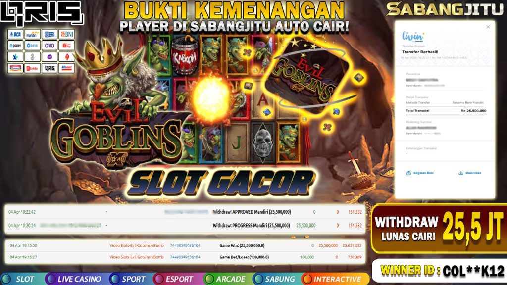 BUKTI KEMENANGAN 04 APRIL DI GAME NoLimit City-Evil Goblins xBomb WITHDRAW 25.500.000.