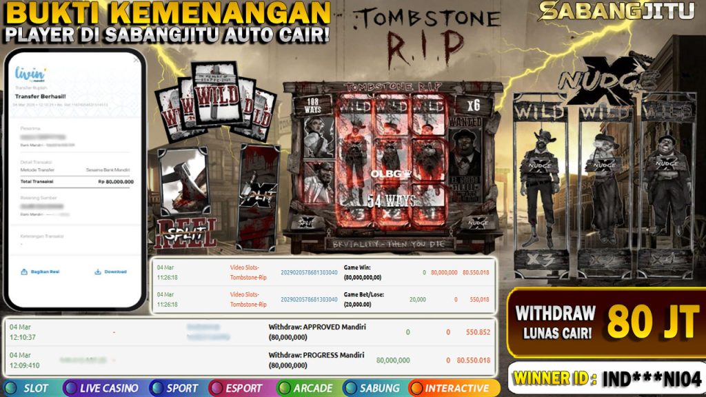 BUKTI KEMENANGAN 04 Maret DI GAME Tombstone Rip WITHDRAW RP 80.000.000.