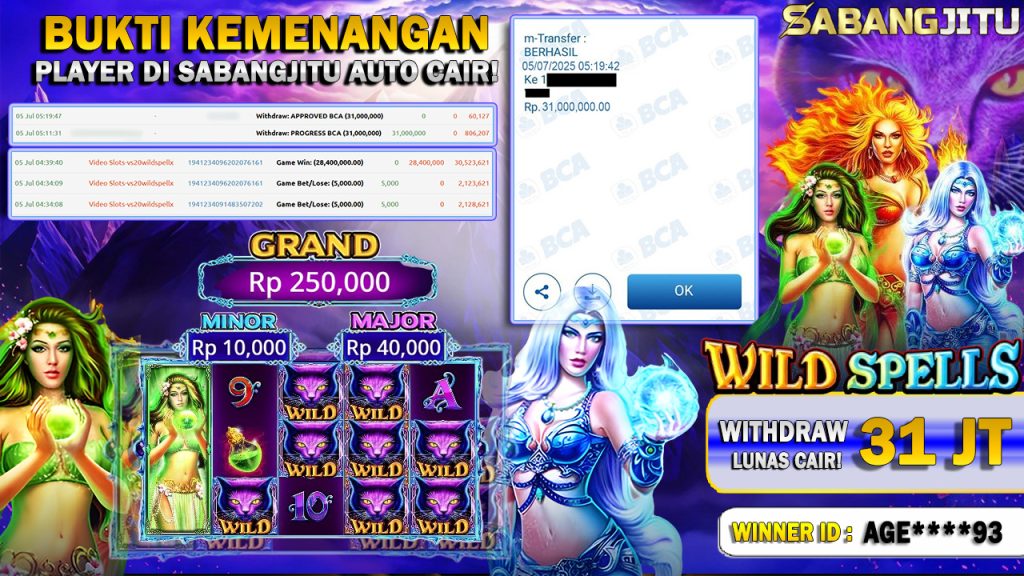 BUKTI KEMENANGAN 05 JULI DI GAME WILD SPELLS WITHDRAW RP 31.000.000.,-