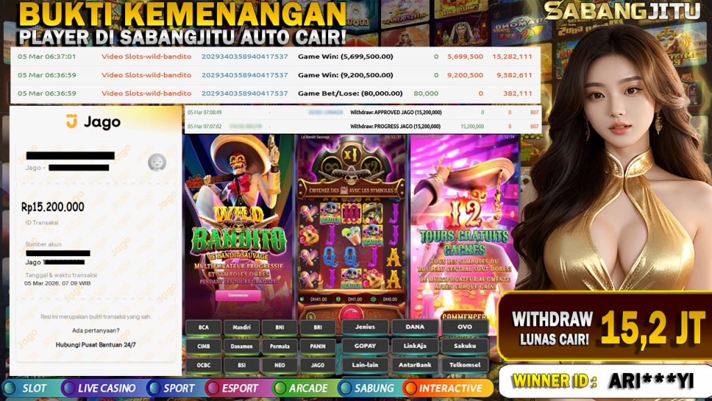 BUKTI KEMENANGAN 05 MARET DI GAME WILD BANDITO-PG SOFT WITHDRAW 15.200.000.,-