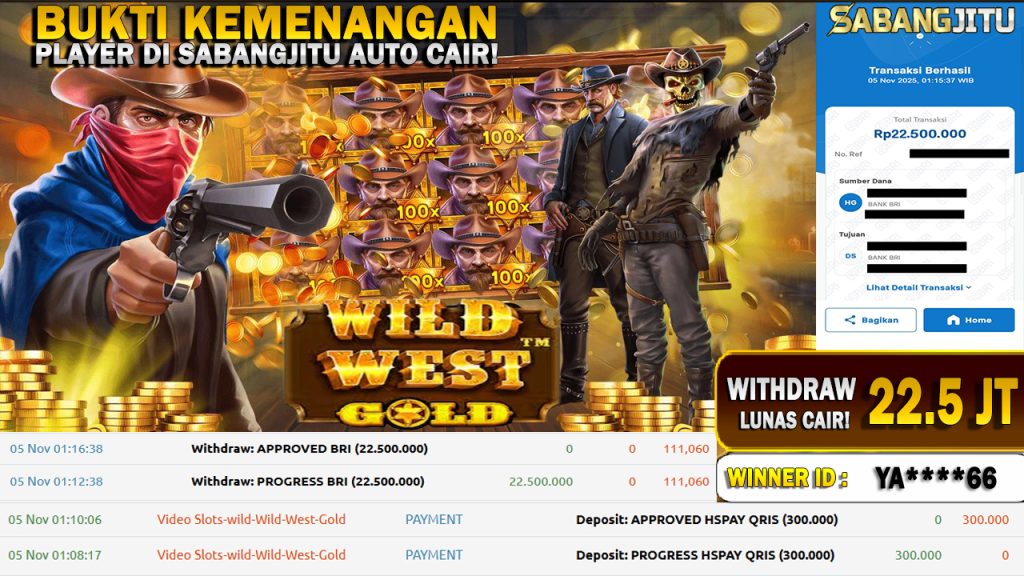 BUKTI KEMENANGAN 05 NOVEMBER DI GAME Wild West Gold WITHDRAW 22.500.000.,-