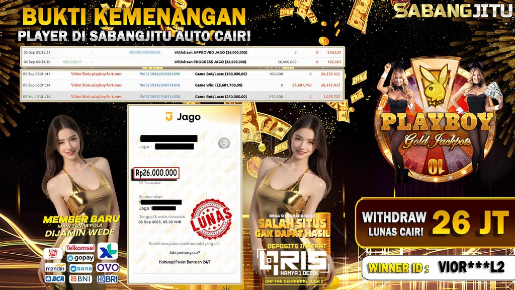 BUKTI KEMENANGAN 05 SEPTEMBER DI GAME PLAYBOY-FORTUNES WITHDRAW RP 26.000.000.,-