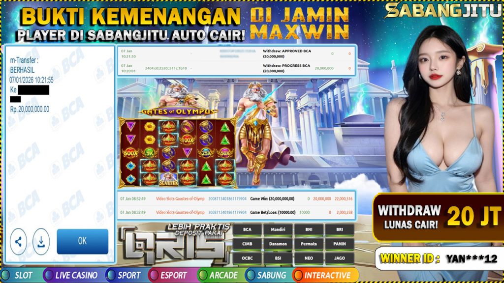 BUKTI KEMENANGAN 07 JANUARI DI GAME Gaustes of Olymp WITHDRAW 20.000.000 LUNAS.