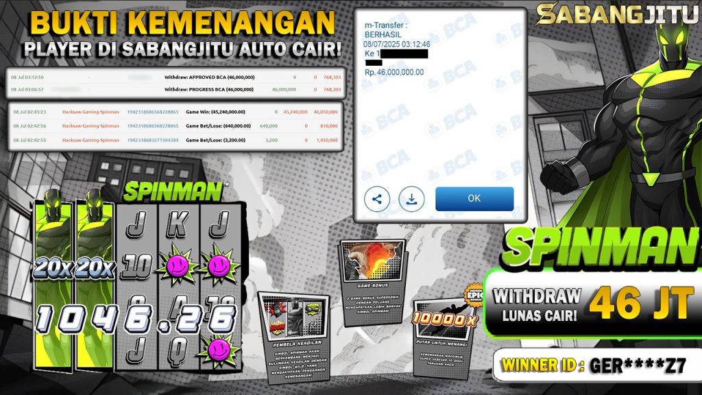BUKTI KEMENANGAN 08 JULI DI GAME SPINMAN WITHDRAW RP 46.000.000.,-