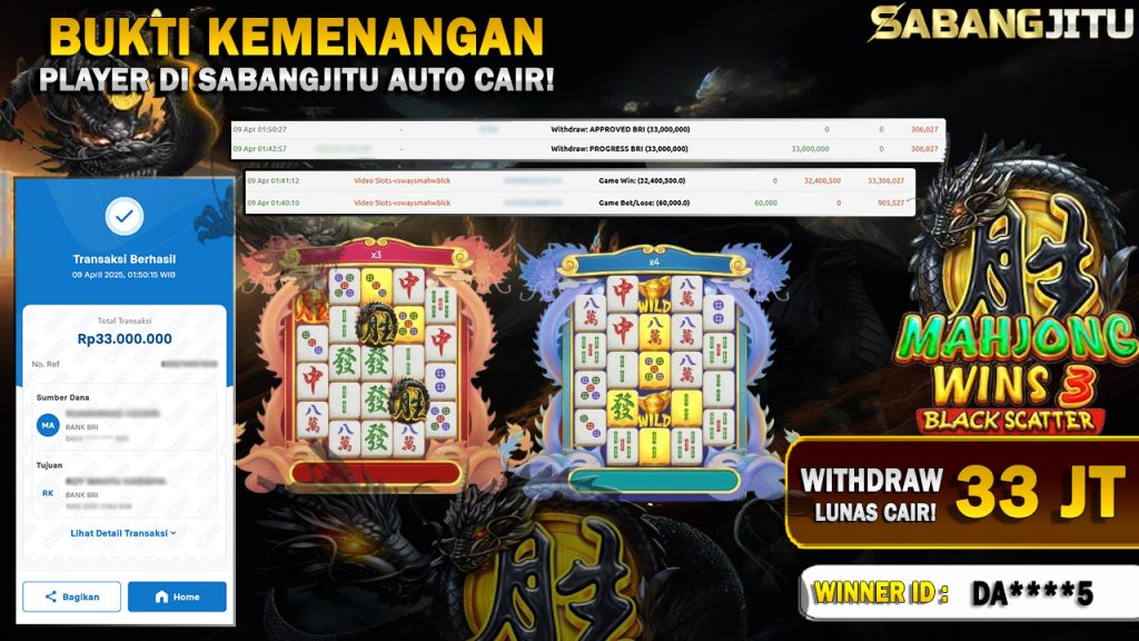 BUKTI KEMENANGAN 09 APRIL DI GAME MAHJONG WINS 3 WITHDRAW RP 33,000,000.,-