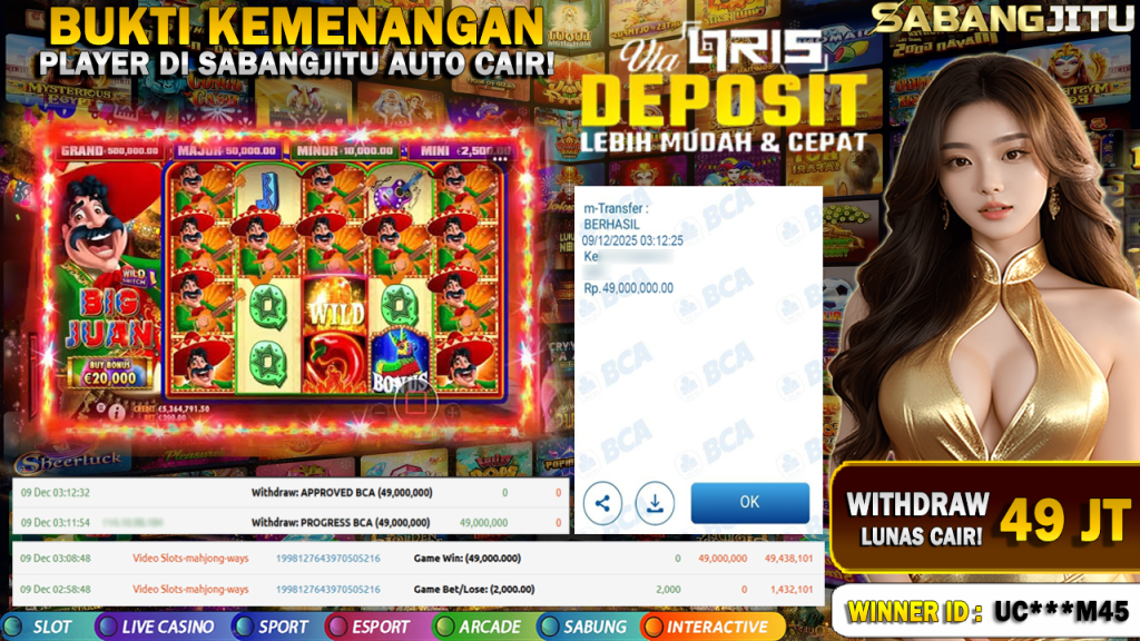 BUKTI KEMENANGAN 09 DESEMBER DI GAME BIG JUAN-PRAGMATIC PLAY WITHDRAW 49.000.000.,-