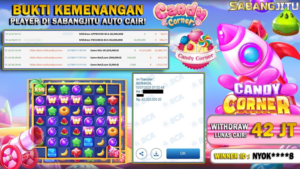 BUKTI KEMENANGAN 10 JULI DI GAME CANDY CORNER WITHDRAW RP 42.000.000.,-