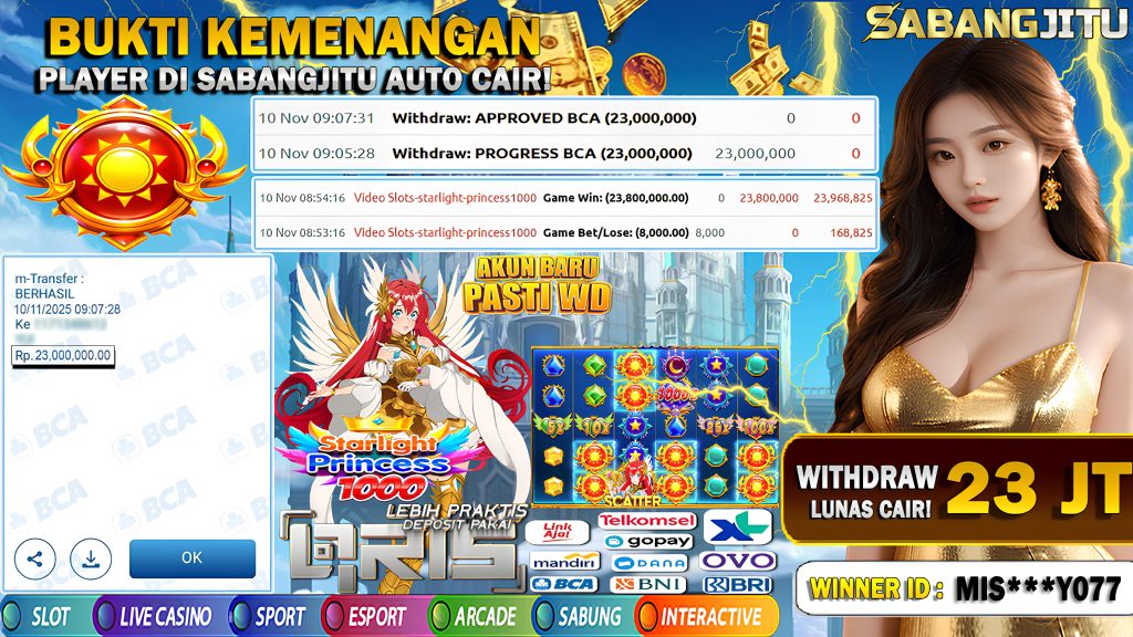 BUKTI KEMENANGAN 10 NOVEMBER DI GAME STARLIGHT PRINCESS 1000 WITHDRAW 23.000.000.,-