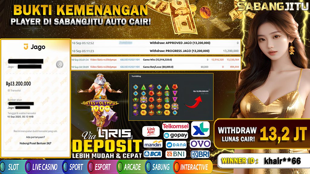 BUKTI KEMENANGAN 10 SEPTEMBER DI GAME PRAGMATIC-PLAY GATES OF OLYMPUS WITHDRAW RP 13.200.000.,-