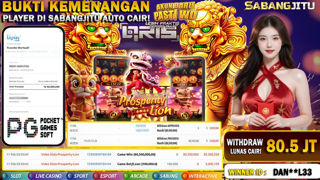 BUKTI KEMENANGAN 11 FEBRUARI DI GAME PG-Prosperity-Lion WITHDRAW RP 80.500.000.,