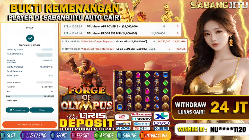 BUKTI KEMENANGAN 11 NOVEMBER DI GAME FORGE OF OLYMPUS WITHDRAW 24.000.000.,-