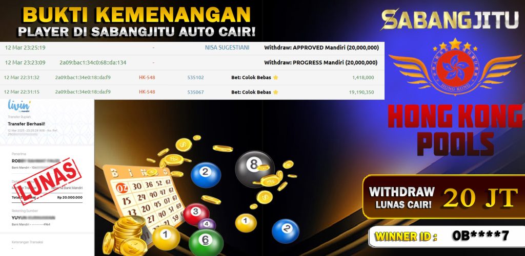 BUKTI KEMENANGAN 12 MARET 2025 DI TOGEL PASARAN HK POOLS WD RP 20,000,000 JT