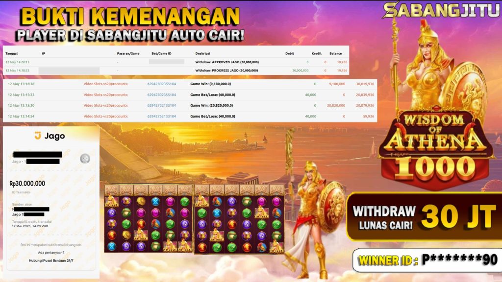 BUKTI KEMENANGAN 12 MEI DI GAME PRAGMATIC PLAY WISDOM OF ATHENA 1000 WITHDRAW RP 30.000.000,-