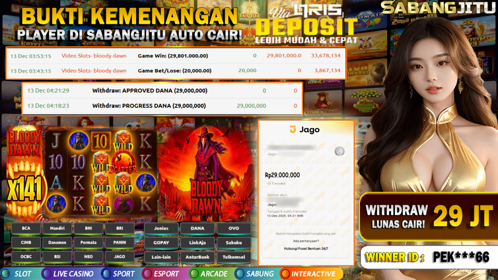 BUKTI KEMENANGAN 13 DESEMBER DI GAME BLOODY DAWN PRAGMATIC-PLAY WITHDRAW RP 29.000.000.,-