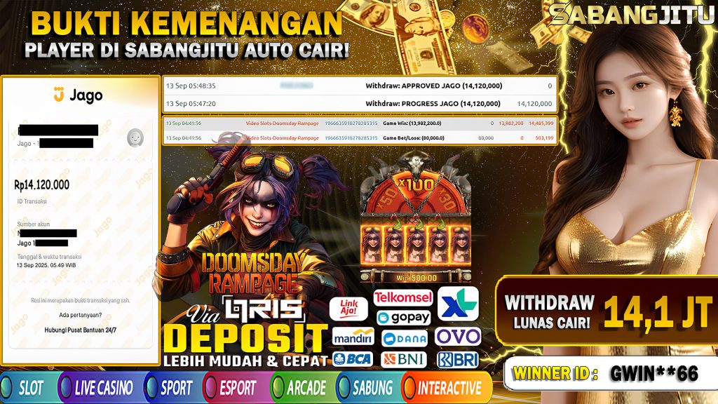 BUKTI KEMENANGAN 13 SEPTEMBER DI GAME PGSoft Doomsday Rampage WITHDRAW 14.120.000.,-