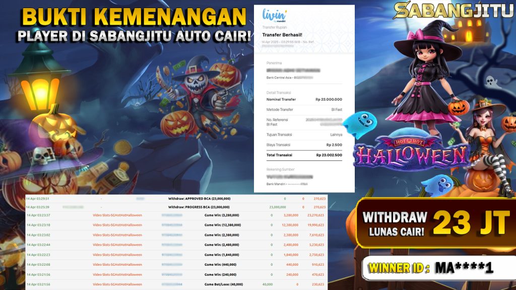 BUKTI KEMENANGAN 14 APRIL DI GAME HOT-HOT HALLOWEEN WITHDRAW RP 23.000.000.,-