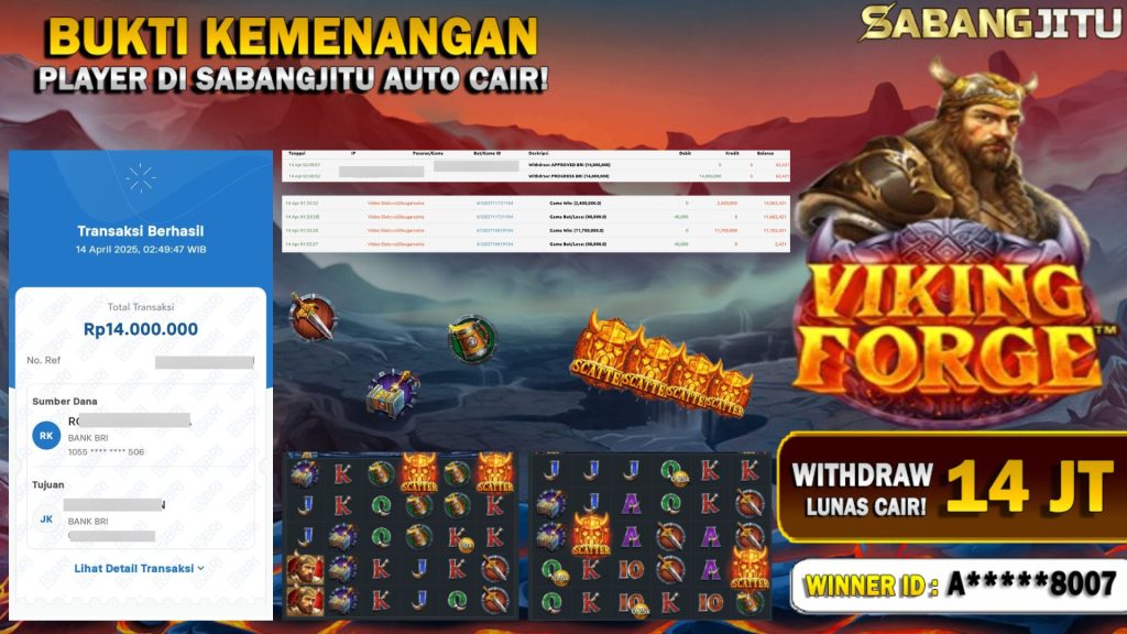 BUKTI KEMENANGAN 14 APRIL DI GAME VIKING FORGE WD 14 JUTA