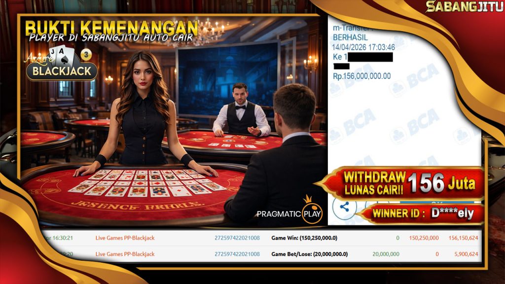 BUKTI KEMENANGAN 14 APRIL DI LIVE GAMES PP-BLACKJACK WITHDRAW RP 156.000.000.,-