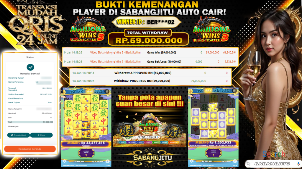 BUKTI KEMENANGAN 14 JANUARI DI GAME PRAGMATIC-PLAY MAHJONG WINS 3 – BLACK SCATTER WITHDRAW RP59.000.000.,-