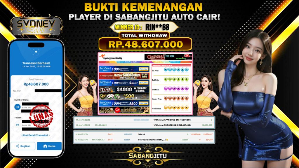BUKTI KEMENANGAN 14 JANUARI DI PASARAN SYDNEY POOLS-WITHDRAW RP 48.607.000.,-