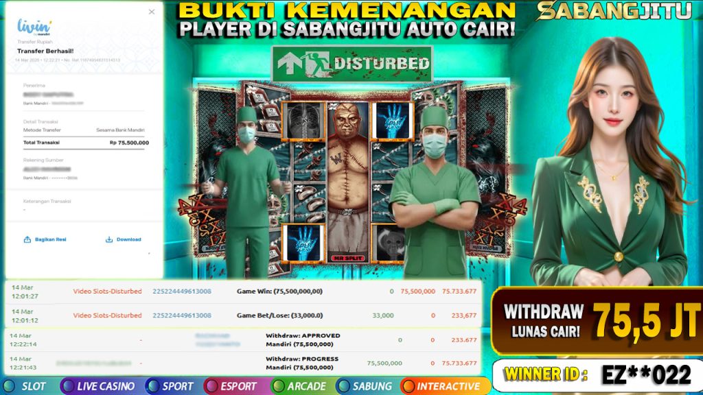 BUKTI KEMENANGAN 14 MARET DI GAME Disturbed WITHDRAW 75.500.000.