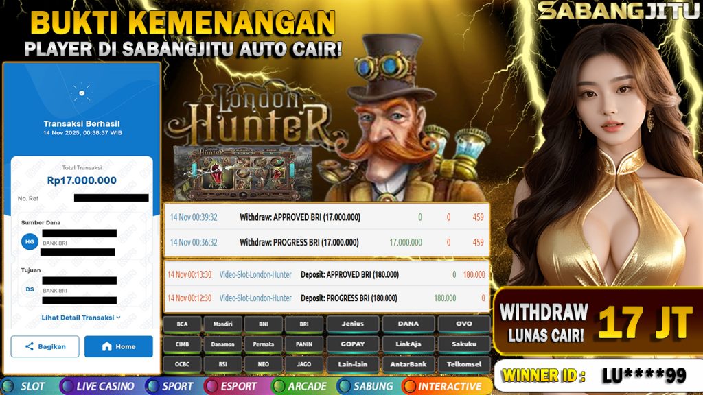 BUKTI KEMENANGAN 14 NOVEMBER DI GAME London Hunter WITHDRAW 17.000.000.,-
