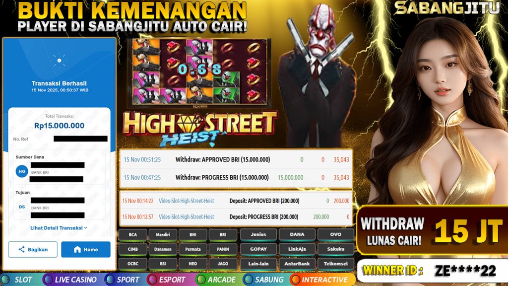 BUKTI KEMENANGAN 15 NOVEMBER DI GAME High Street Heist WITHDRAW 15.000.000.,-