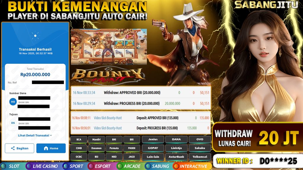 BUKTI KEMENANGAN 16 NOVEMBER DI GAME Bounty Hunt WITHDRAW 20.000.000.,-
