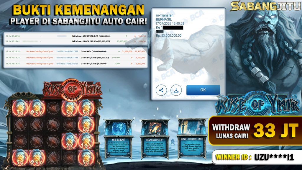 BUKTI KEMENANGAN 17 JULI DI GAME RISE OF YMIR WITHDRAW RP 33.000.000.,-