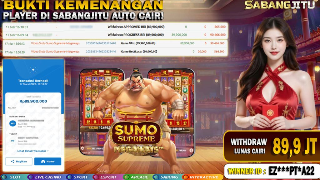 BUKTI KEMENANGAN 17 Maret DI GAME Sumo-Supreme-Megaways – PRAGMATIC PLAY WITHDRAW 89.900.000.