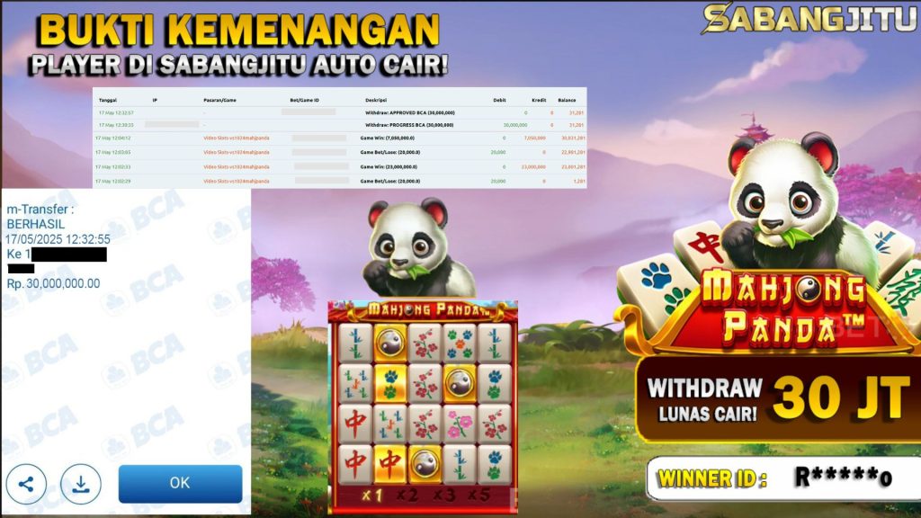 BUKTI KEMENANGAN 17 MEI DI GAME PRAGMATIC PLAY MAHJONG PANDA WITHDRAW RP 30.000.000.,-