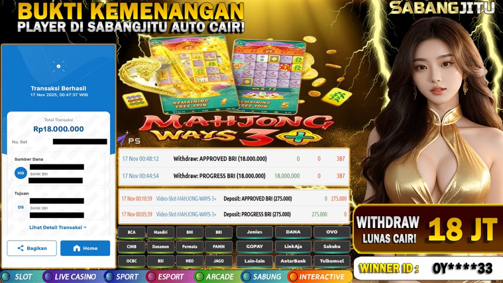 BUKTI KEMENANGAN 17 NOVEMBER DI GAME MAHJONG WAYS 3+ WITHDRAW 18.000.000.,-