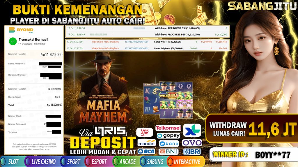BUKTI KEMENANGAN 17 OKTOBER DI GAME MAFIA MAYHEM-PGSOFT WITHDRAW 11.620.000.,-