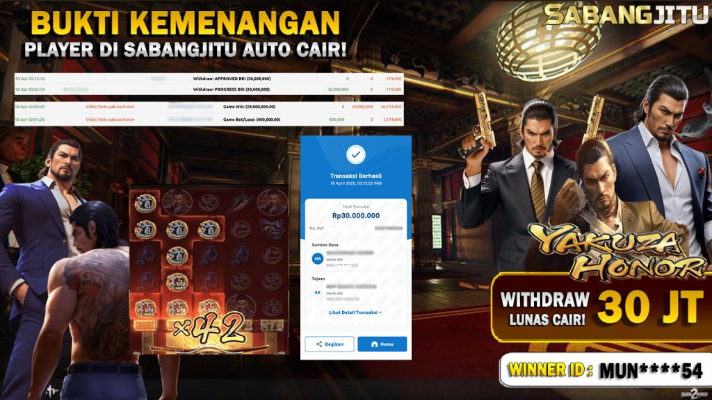 BUKTI KEMENANGAN 18 APRIL DI GAME YAKUZA HONOR WITHDRAW RP 30.000.000.,-