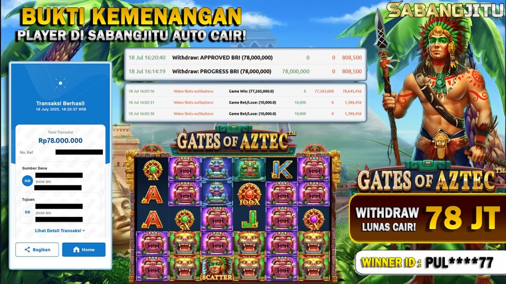 BUKTI KEMENANGAN 18 JULI DI GAME GATES OF AZTEC WITHDRAW RP 78.000.000.,-