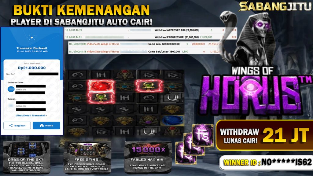 BUKTI KEMENANGAN 18 JULI DI GAME Wings of Horus WITHDRAW RP 21.000.000.,-