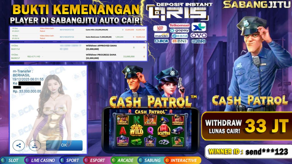 BUKTI KEMENANGAN 19 DESEMBER DI GAME CASJH PATROL WITHDRAW RP33.000.000 LUNAS