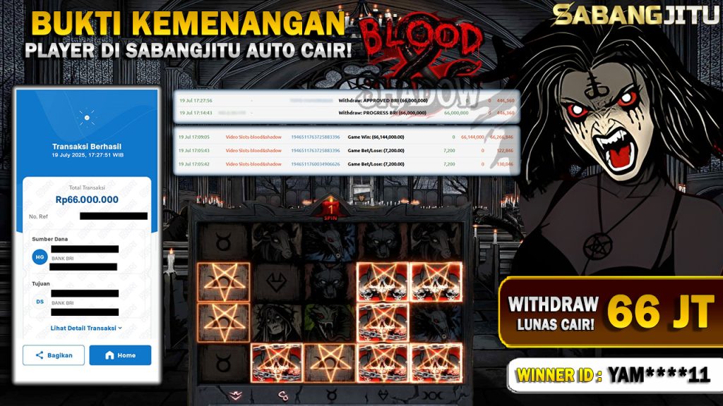 BUKTI KEMENANGAN 19 JULI DI GAME BLOOD & SHADOW WITHDRAW RP 66.000.000.,-