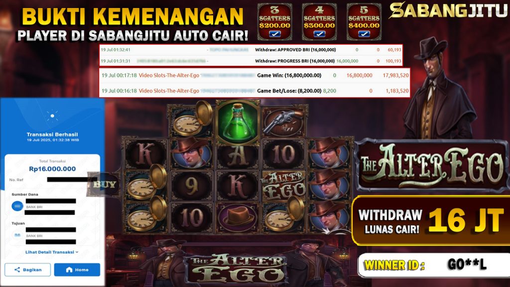 BUKTI KEMENANGAN 19 JULI DI GAME The Alter Ego WITHDRAW RP 16.000.000.,-