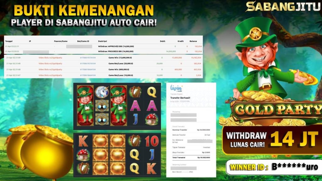 BUKTI KEMENANGAN 21 APRIL DI GAME GOLD PARTY WD RP 14.000.000.,- JUTA