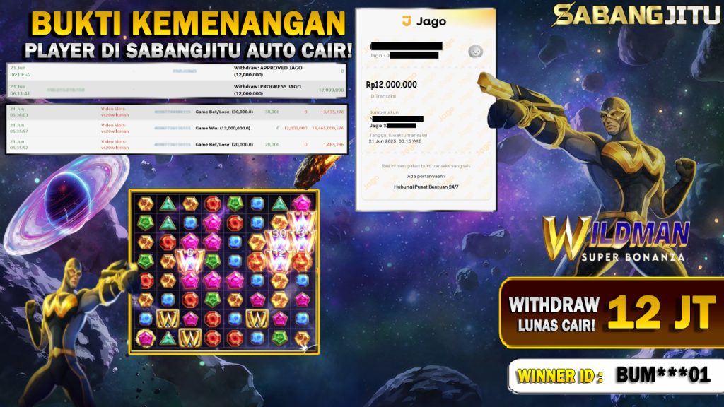 BUKTI KEMENANGAN 21 JUNI DI GAME WILDMAN WITHDRAW RP 12.000.000.,-