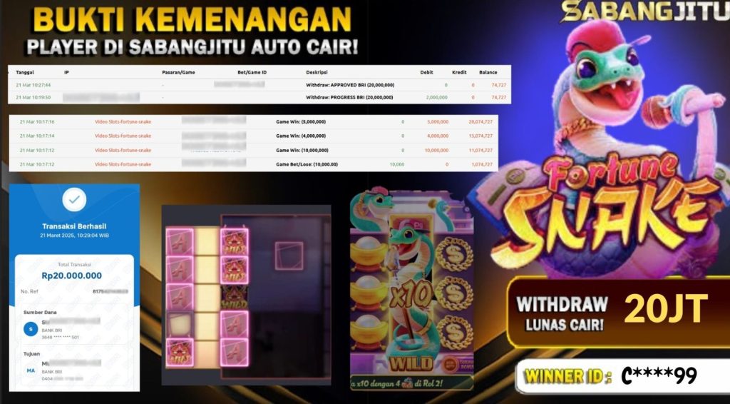 BUKTI KEMENANGAN 21 MARET 2025 DI GAME FORTUNE SNAKE WD 20 JUTA