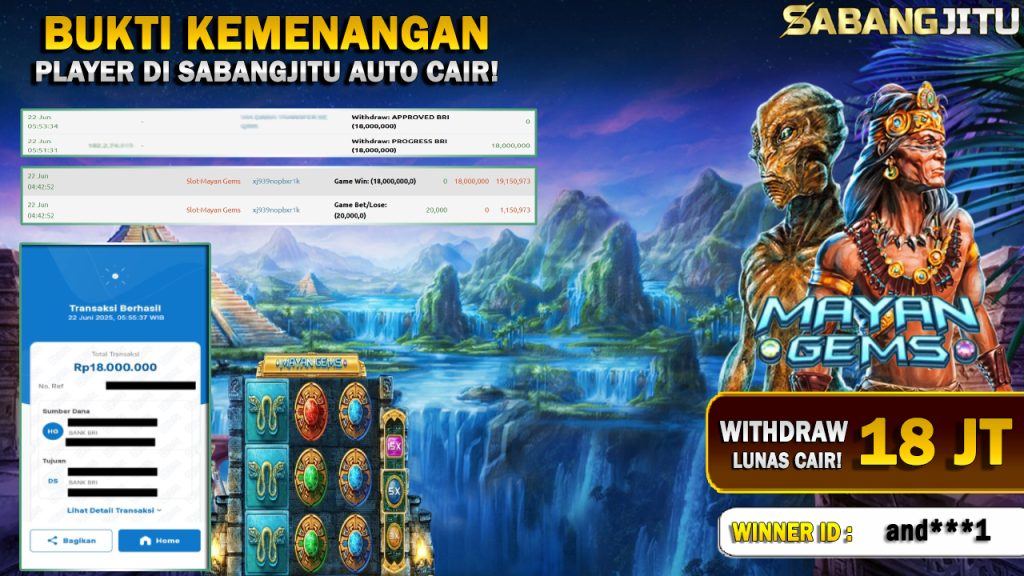 BUKTI KEMENANGAN 22 JUNI DI GAME MAYAN-GEMS WITHDRAW RP 18.000.000,-