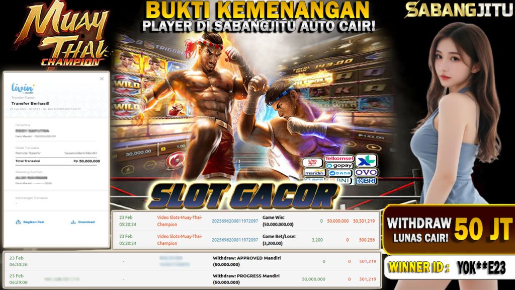 BUKTI KEMENANGAN 23 FEBRUARY DI GAME PG Muay-Thai-Champion WITHDRAW RP 50.000.000.