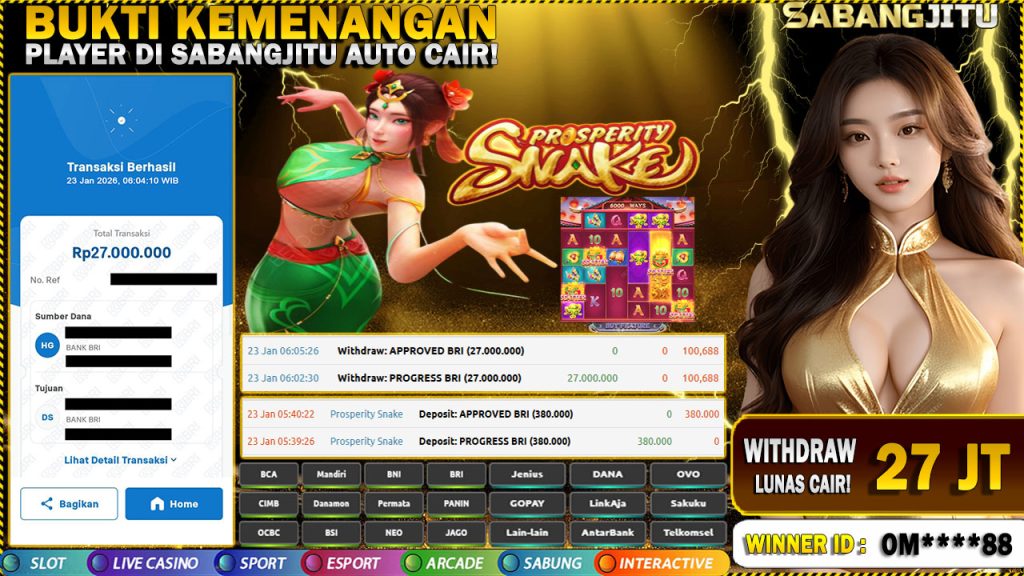 BUKTI KEMENANGAN 23 JANUARY DI GAME Prosperity Snake WITHDRAW 27.000.000.,-