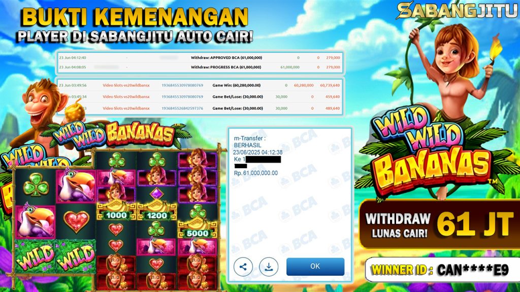 BUKTI KEMENANGAN 23 JUNI DI GAME WILD WILD BANANAS WITHDRAW RP 61.000.000.,-